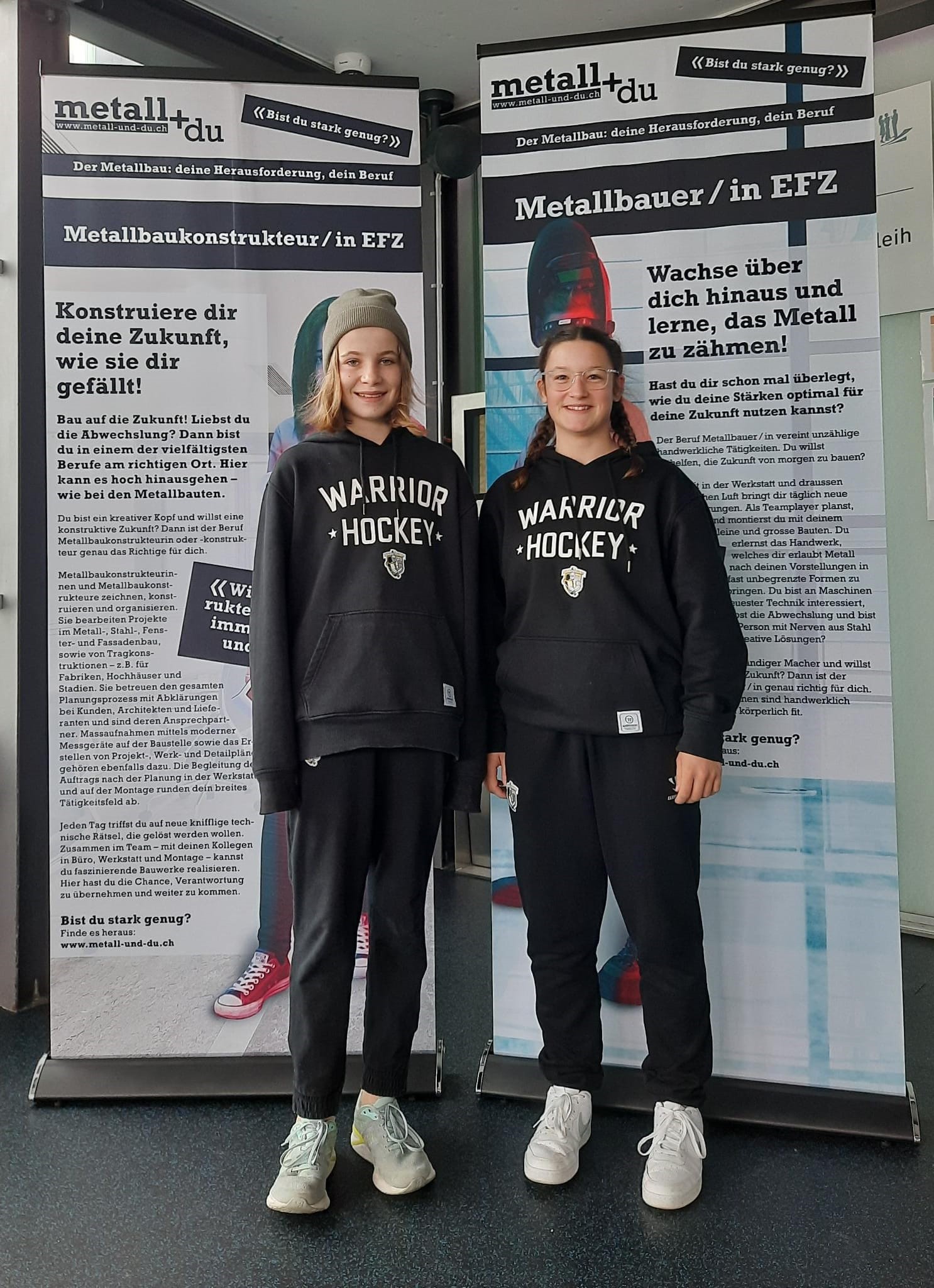 Andreas Fischer, Metallbau-Botschafter und Trainer beim EHC Burgdorf, nutzte den Swiss Ice Hockey Day in Burgdorf, um den anwesenden Spielerinnen und Spielern die Berufe im Metallbau näherzubringen. Es wurde also gleich doppelt Nachwuchsförderung betrieben an diesem Tag!
